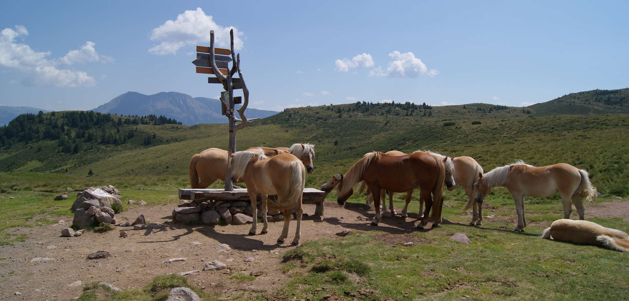 We take the bikeshuttle from Naturno and drive to Avelengo. We start riding from the car park in Avelengo on a forest road that will lead us first to the "Wurzer" hut, then to the "Vöraner Alm" hut and from there we proceed on a trail to get to the "Auener Jöchl" (1950m), where we will have a beautiful view you won´t find a second time. We take an other trail that will bring us to the "Möltner Kaser" hut, where we will also have lunch. After lunch we ride on forest roads first past the "Sattler" hut, then the "Leadner" hut and finally we get back to Avelengo, where we retake the bikeshuttle to get back to Naturno to end our day.
